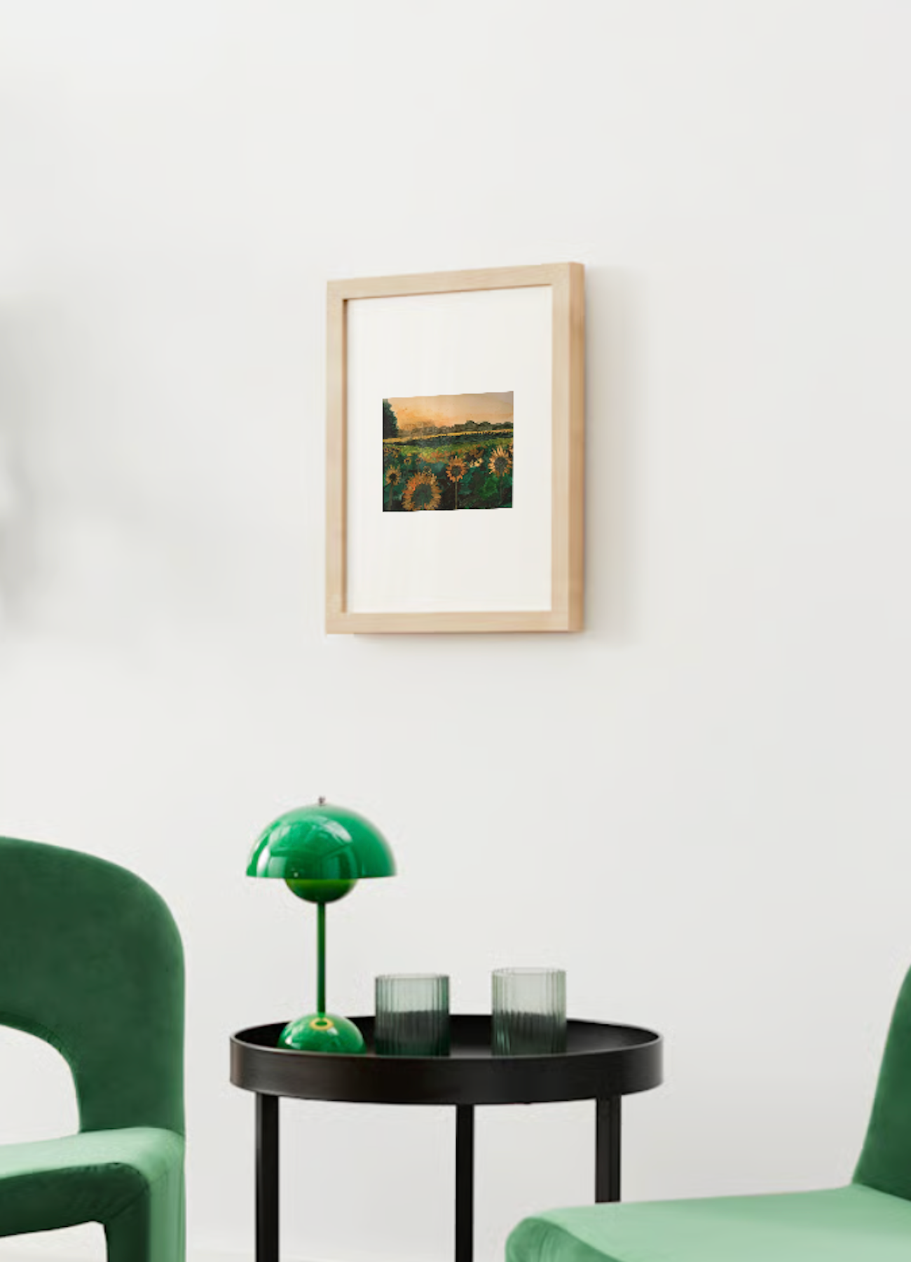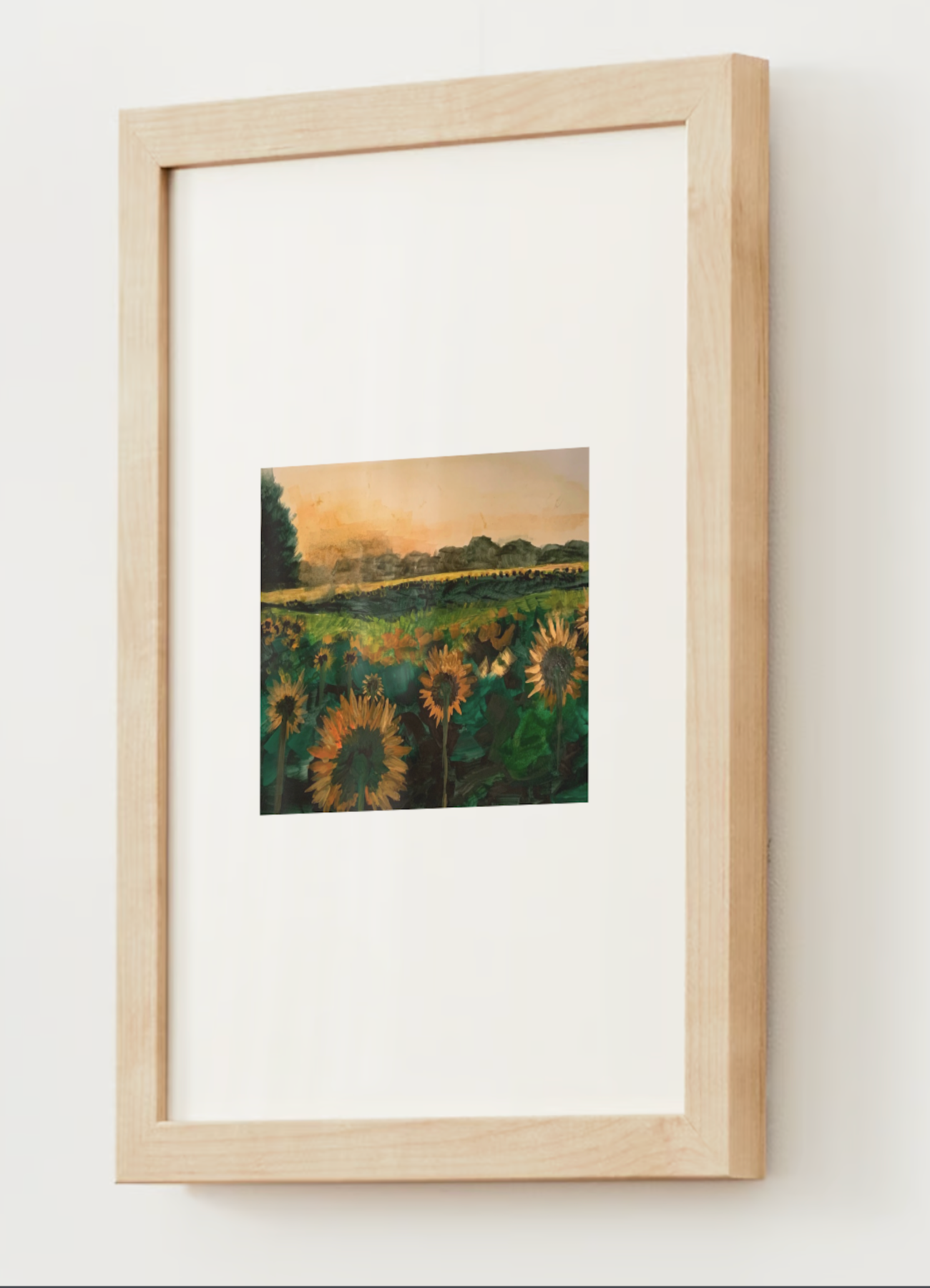 Original was inspired by the endless warm and bright sunflower fields of Kansas