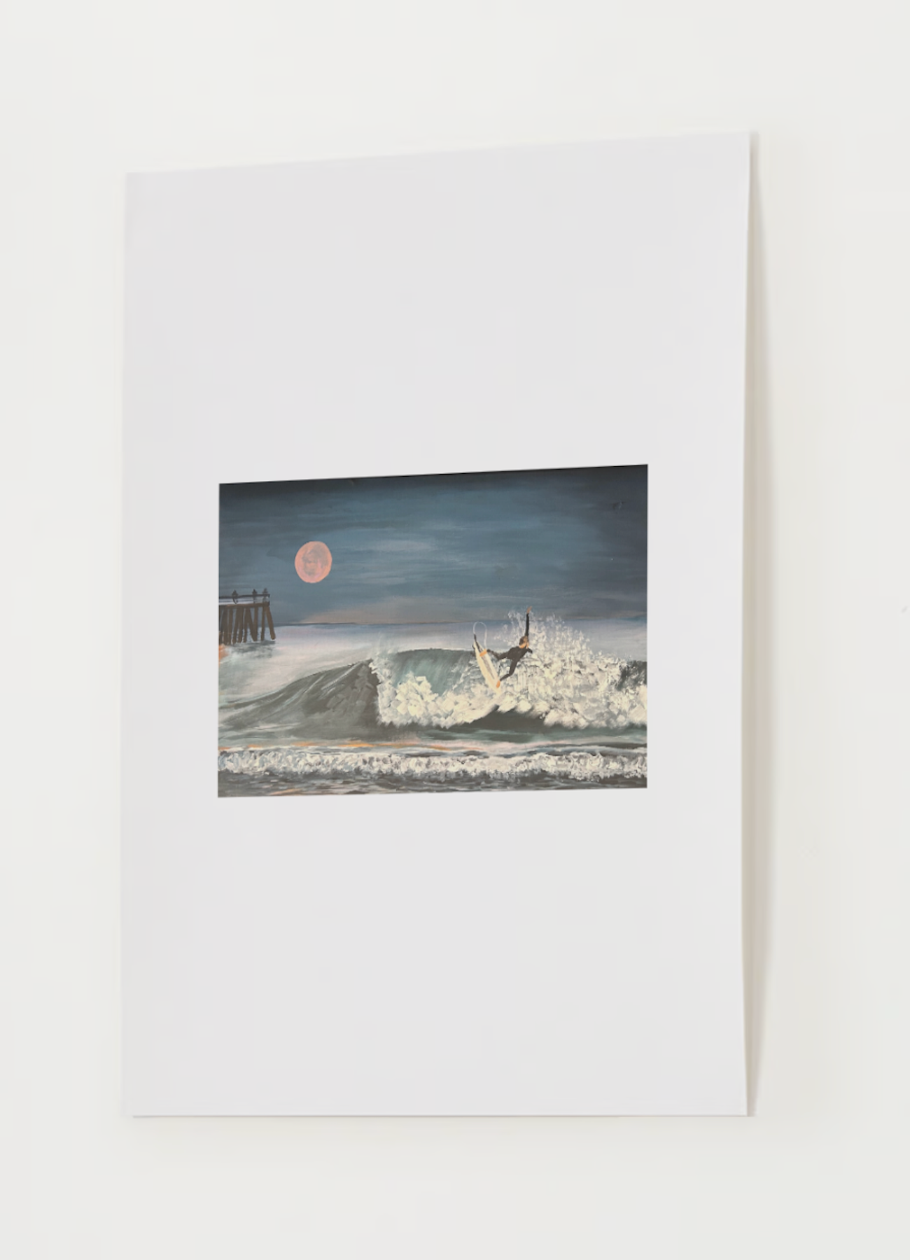 I made the original painting for my husband on a piece of scrap wood that he found. I was inspired by the Santa Monica Pier at sunset where the surfers love to catch waves, a place very special and memorable to both of us.